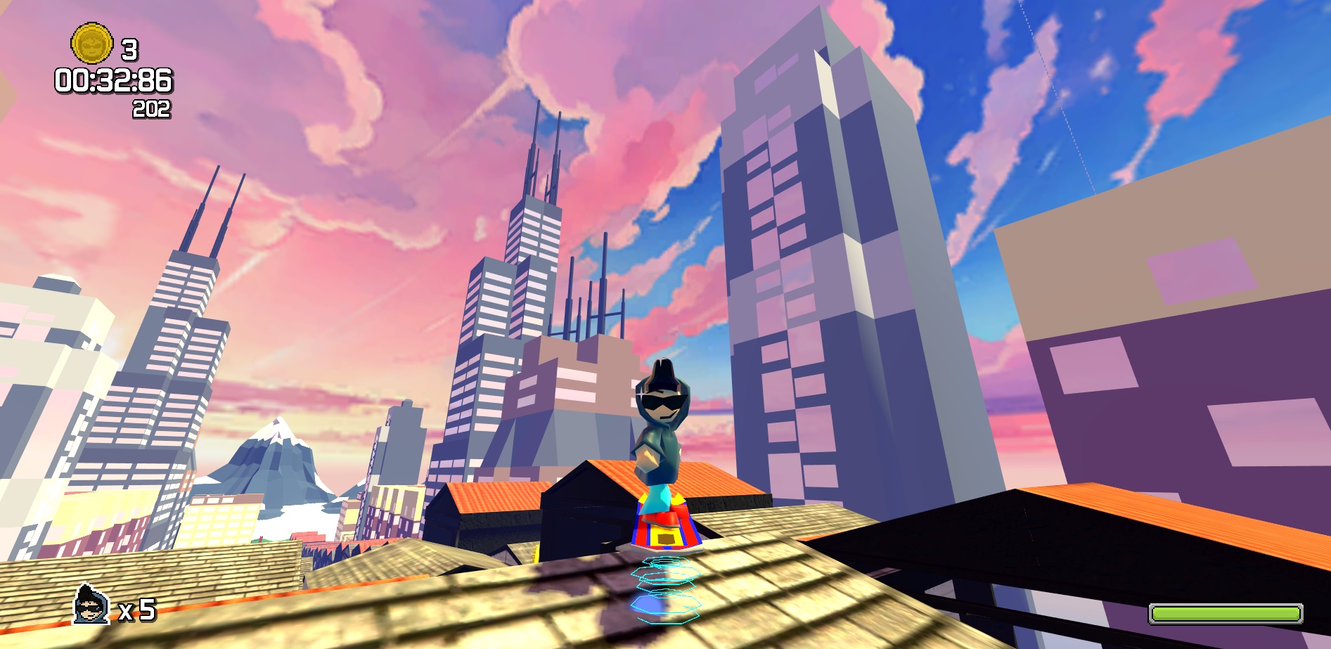 Pick up board parts to increase speed and jump power!